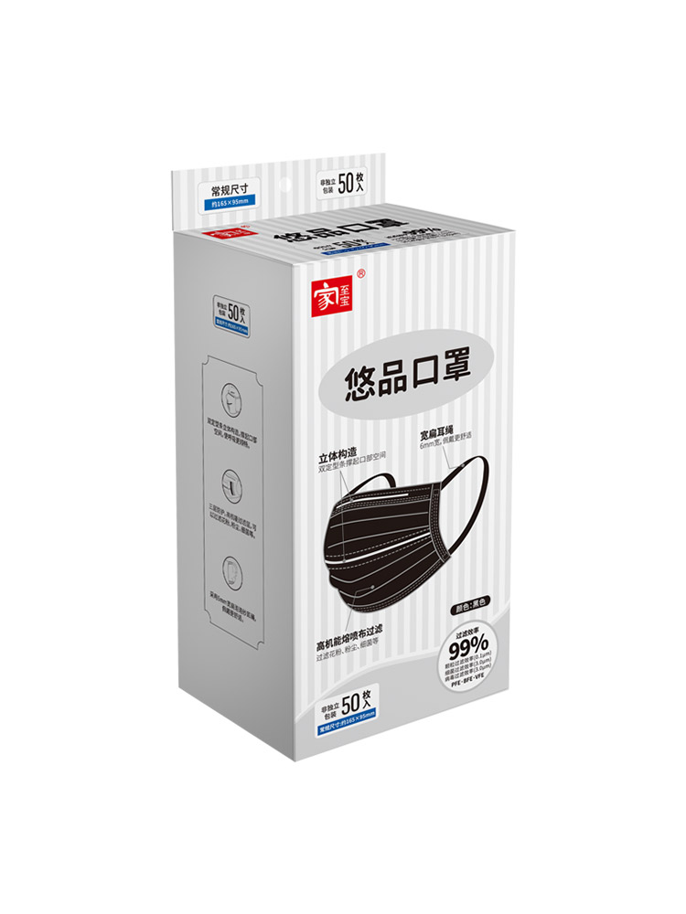 【家至寶】悠品口罩 黑色 50枚非獨立裝