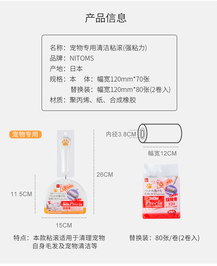 【NITOMS】強(qiáng)粘力寵物用粘滾/替換裝2卷裝